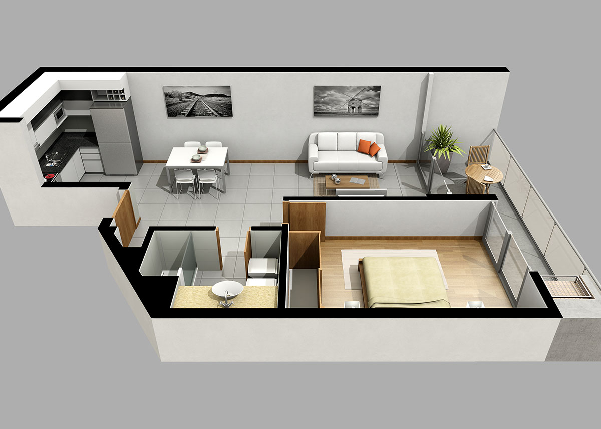 Edificio de unidades de 1 dormitorio y monomabientes grandes.