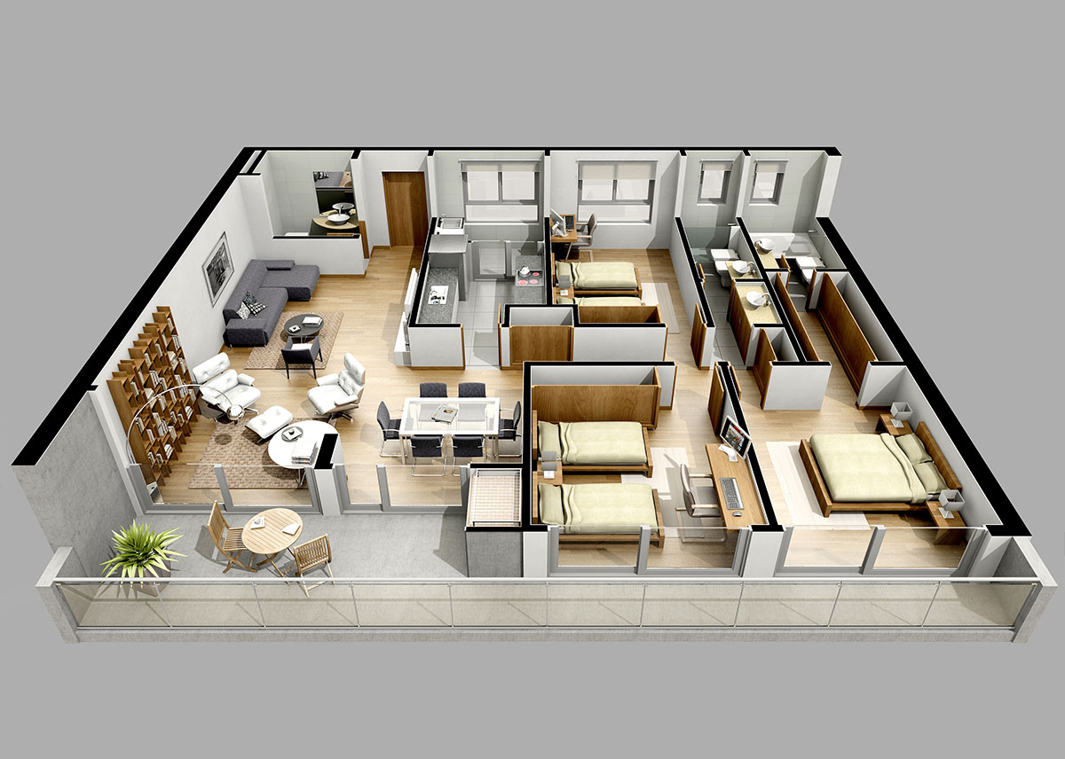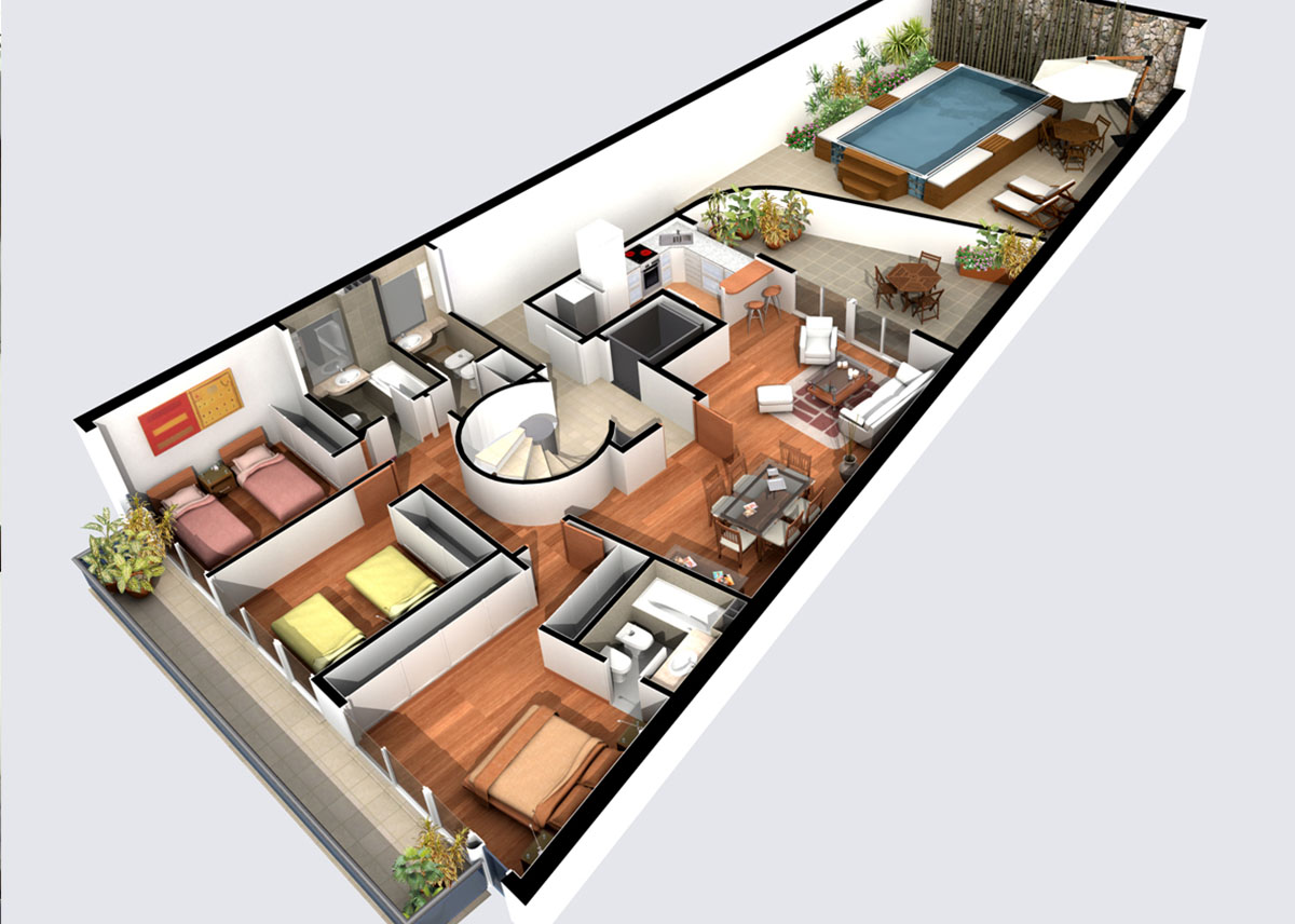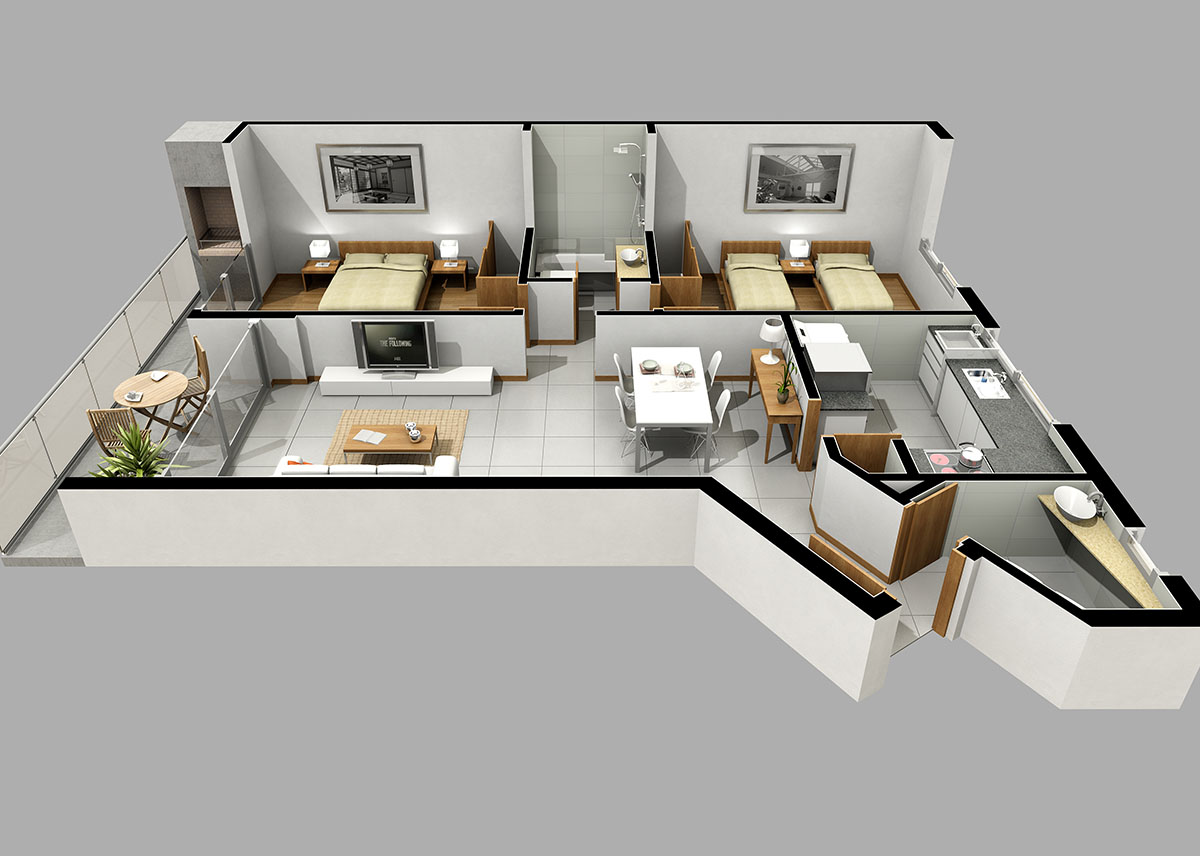 Unidades de 3 dormitorios, 1 en suite, 3 baños, amplio estar comedor en L, lavadero independiente, balcón terraza corrido con parrillero orientado al norte, cocheras, piscina, azotea común y exclusiva con parrilla.