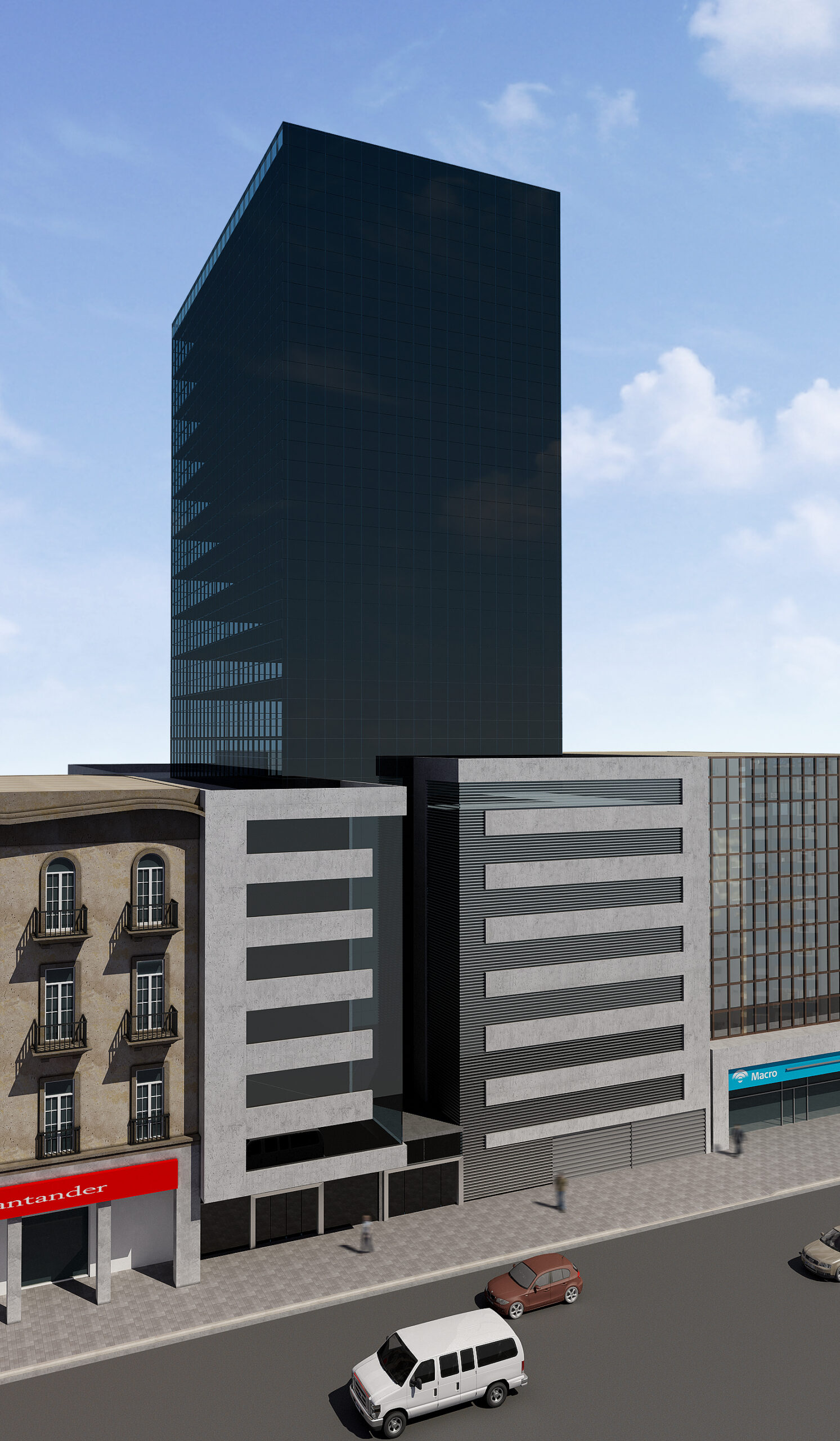Edificio de oficinas premium con local institucional en planta baja, 17 plantas de oficinas modulares, más de 200 de cocheras y roof bar.
